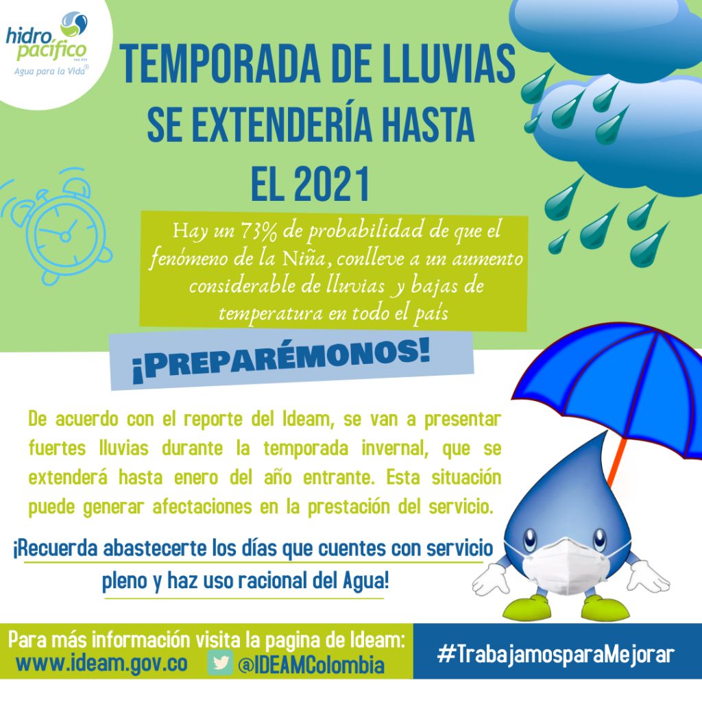 Es importante recordar que cruzamos por una temporada invernal que posiblemente dure hasta los primeros meses del año entrante. Según el IDEAM, Hay un 73% de probabilidad que el fenómeno de la niña, conlleve a un aumento considerable de lluvias y bajas de temperatura en todo el país.