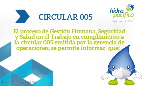 Circular 005 – Hidropacífico S.A.S Esp por Comunicaciones Hidropacifico | 12 junio, 2020 Sin categoríaCircular 005Comparte este articulo en tus redes sociales. Suspensión de Servicio en Conducción 16” por Instalación de Válvulas VentosasCircular 006 – Hidropacifico S.A.S