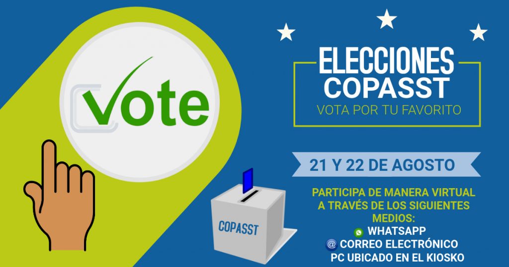 Por lo anterior, Hidropacífico este 21 y 22 de agosto llevará acabo las elecciones COPASST, que cuenta con 8 postulados, quienes desde ya iniciaron sus campañas, para ser elegidos como los nuevos representantes de los trabajadores para el período 2020 – 2022.