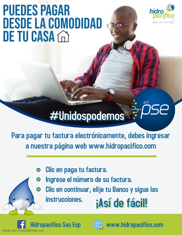 Pagar tu factura ahora es mucho mas Fácil, Rápido y seguro aun solo click y lo mejor es que no tienes que salir de tu casa, paga en linea con Pse, ingresa a nuestra pagina web: www.hidropacifico.com opción pagos en linea y sigue las intrusiones.